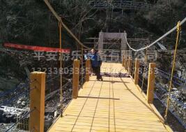 2、然后進(jìn)行橋面建設(shè):所需材料:承載索,主纜索,支撐柱,橋面板,防護(hù)網(wǎng)及其他配件。